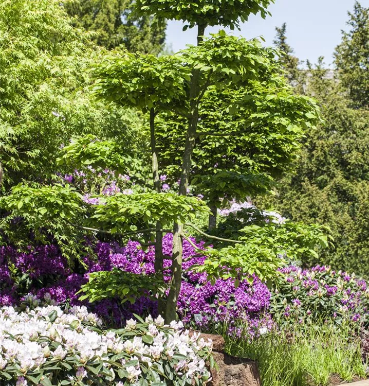 Dunkelgraue, glatte Rinde macht diese Pflanze zu einem Blickfang in jedem Garten.