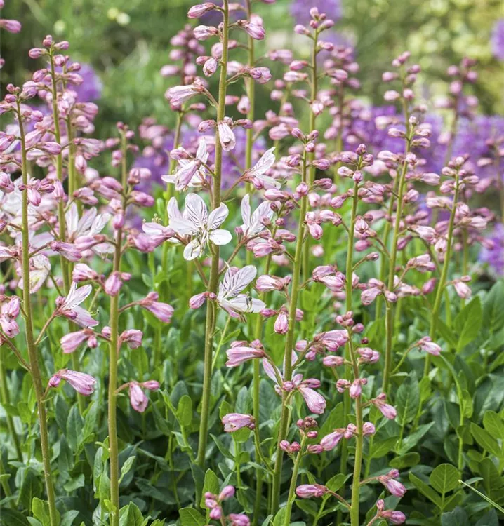 Der Gewöhnliche Diptam (Dictamnus albus) ist eine aufrechte Staude, die von Juni bis Juli rosafarbene, in Rispen angeordnete Blüten mit einem angenehmen Duft bildet. Seine gefiederten, Blätter sind dunkelgrün. An einem sonnigen bis halbschattigen Standort mit durchlässigem, nährstoffreichem Boden erreicht er gewöhnlich eine Höhe von ca. 80 cm und wird ca. 60 cm breit. Der Gewöhnliche Diptam ist gut frostverträglich.
