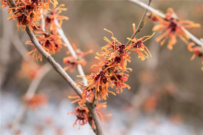 Hamamelis x intermedia 'Aurora' Warum aber sollten sich Pflanzen die Mühe machen und im Winter blühen, wenn es noch kalt draußen ist? Im Sommer ist es schließlich wärmer, sonniger und generell fröhlicher. Aber genau da liegt der Gedanke hinter der Taktik der frühblühenden Gehölze: im Sommer ist die Konkurrenz zu groß. Im Sommer explodiert die Natur förmlich und an jeder Ecke sind Blüten zu finden, die Biene, Hummel und Co. anlocken. Da ist es schwierig, auch ein Stück vom Kuchen abzubekommen. Deshalb blühen Winter-Schneeball und Co. dann, wenn die Konkurrenz besonders gering ist. Aber obwohl die Blüten nicht so auffällig sind wie die vielen bunten Blumen im Sommerbeet: viele frühblühende Gehölze fallen mit sehr extravaganten Blüten auf. Die Zaubernuss ist das beste Beispiel. Die fransigen Blüten zeigen sich ab Januar in leuchtendem Gelb, Orange oder Rot und duften besonders verführerisch.