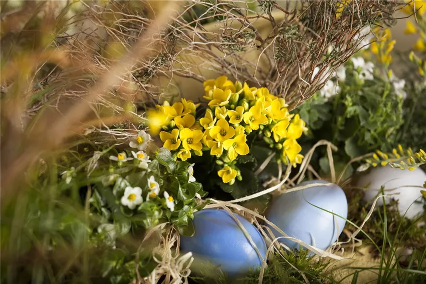 Ostergesteck Natürlich muss der Garten für den Osterhasen Lust aufs Fest machen. Also schon mal bunt bemalte Eier an die passenden Gewächse hängen. Wie gut, wenn es einen Korkenzieherhasel im Garten gibt! Aber natürlich bietet ein gut sortierter Garten für den Osterhasen genügend Alternativen. Einen herrlicher Anblick erzeugen gelbe und weiße Narzissen im Mix, gern in einem Kübel arrangiert und von Küken und weißen Lämmern begleitet. Am besten als Eyecatcher an exponierter Stelle aufstellen.