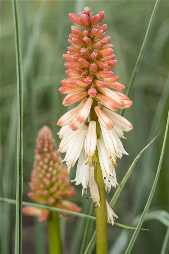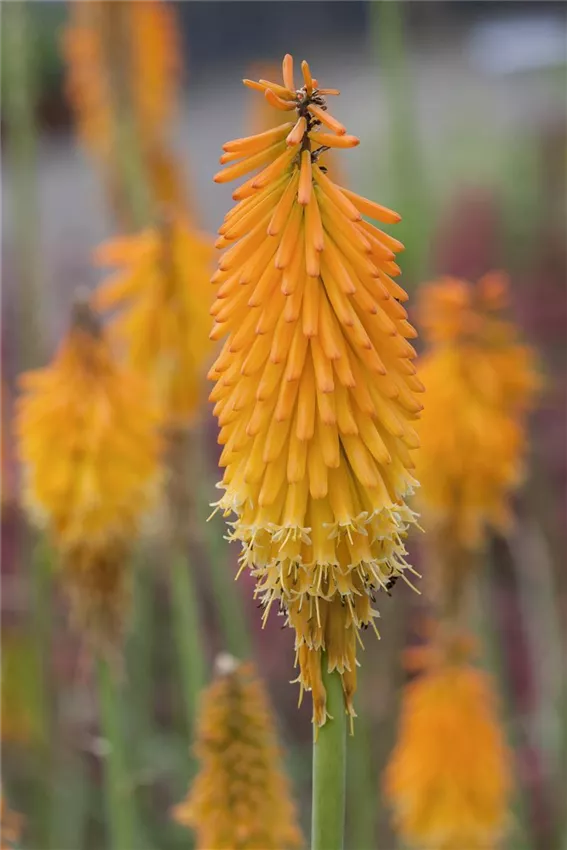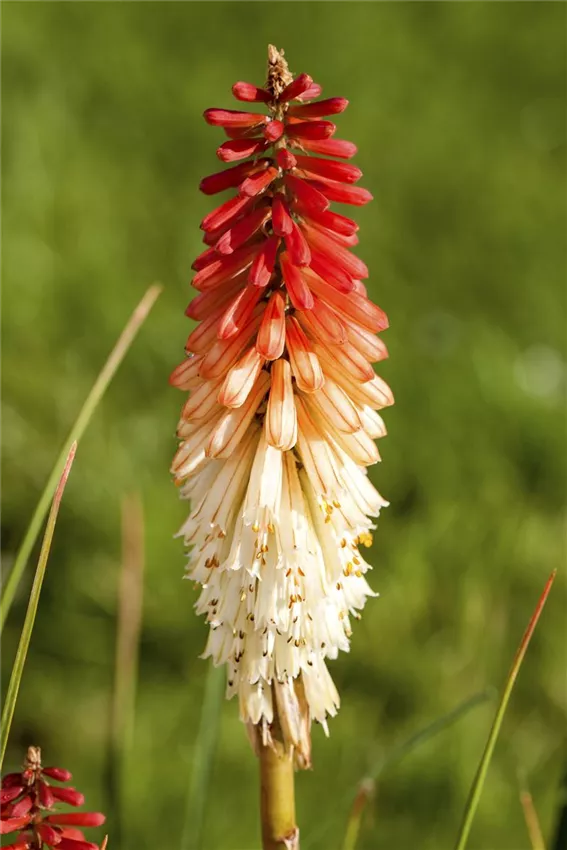 Kniphofia uvaria 'Papaya Popsicle' Wie eine Rakete schießt sie in die Höhe und beeindruckt mit den Farben lodernder Flammen: Die Fackellilie macht im Garten einiges her!