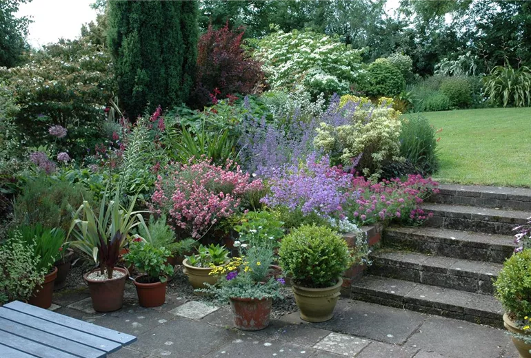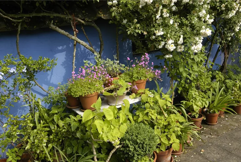 Oft gibt es im Garten, auf dem Balkon und auf der Terrasse mehr schöne Blumen, als es Platz gibt. Da bleibt nur eine Möglichkeit: in die Höhe gehen. Und zwar mit einer Blumentreppe. Die bietet Platz für viele Blumen.